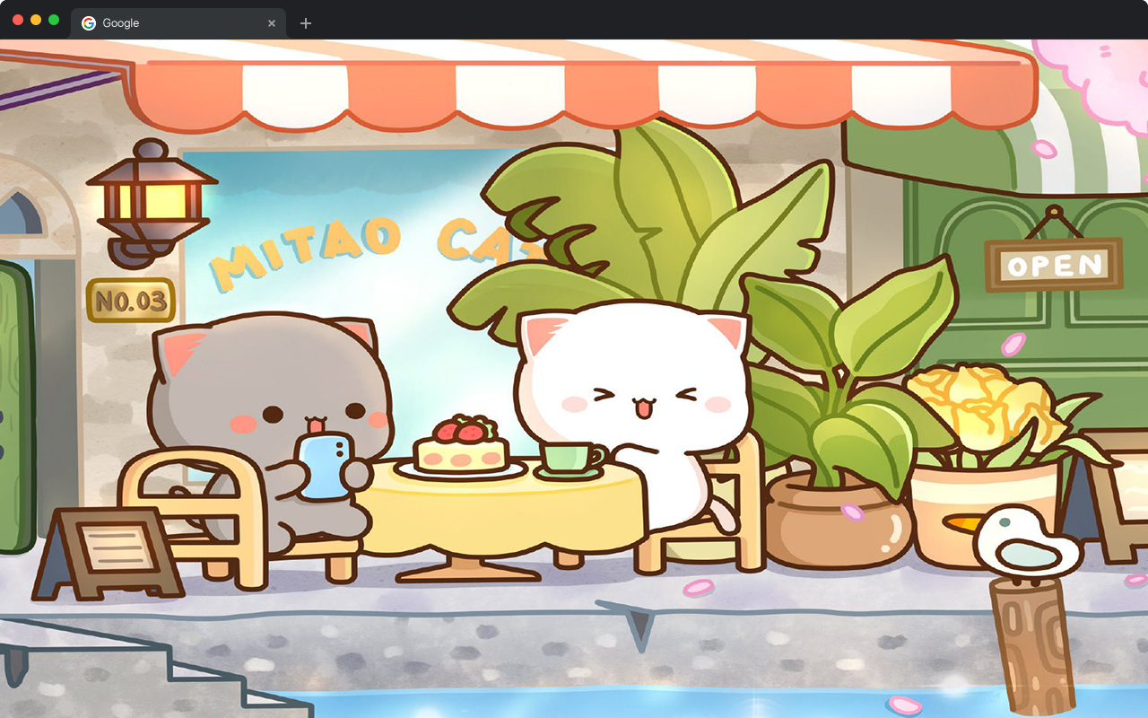 Every time you open a new tab, you’ll see high-definition wallpapers capturing the sweetest moments of Peach and Goma โ whether itโs Peach reading under a tree, Goma dozing off mid-hug, or the two of them strolling through a sunlit garden together.